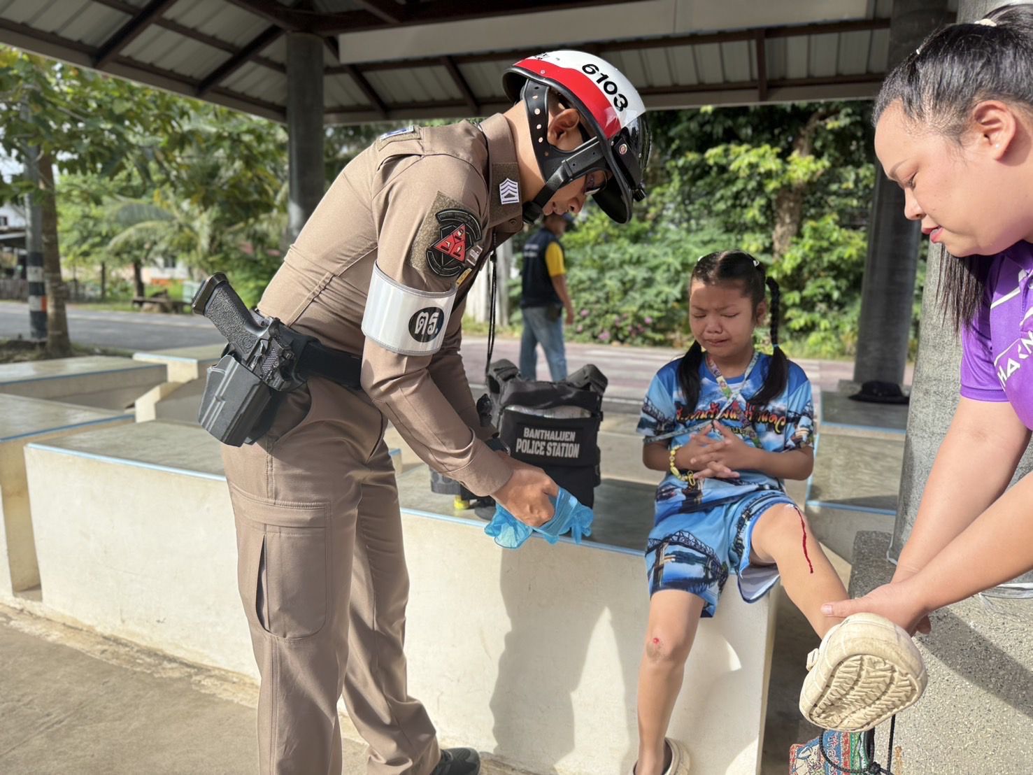 วันที่ 6 ส.ค. 68 เวลา 08.00น. จ.ส.ต.รณจักร ธัญมนภรณ์ ผบ.หมู่(ป.)สภ.บ้านท่าเลื่อน ช่วยเหลือปฐมพยาบาลเ…