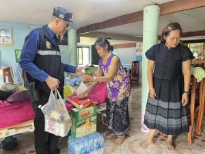 – พ.ต.ท เดชบดินทร์ภัทร ฐีรวัฒน์ดรัณภพ รอง.ผกก.สส.สภ.บ้านท่าเลื่อน – พ.ต.ท.คงเดช โสวภาส รอง ผกก.สอบสวน สภ.บ้านท่าเลื่อน – พ.ต.ท สาธิต ช่อเกตุ สว.สส.สภ.บ้านท่าเลื่อน สถานีตำรวจภูธรบ้านท่าเลื่อน ตำบลชำราก อำเภอเมือง จังหวัดตราด พร้อมด้วยเจ้าหน้าที่เทศบาลตำบลชำราก อำเภอเมืองจังหวัดตราด ได้ ดำเนินโครงการกิจกรรมปันน้ำใจปันสุข นำเครื่องอุปโภคบริโภคมามอบให้ คุณวุฒิไกร ฉุยฉาย อายุ 37 ปี อยู่บ้านเลขที่ 12 หมู่ 3 ตำบลชำราก อำเภอเมือง จังหวัดตราด ซึ่งเป็นผู้ป่วยติดเตียงเนื่องจากประสบอุบัติเหตุ เพื่อสาธารณประโยชน์และสาธารณกุศลสาธุสาธุอนุโมทนา