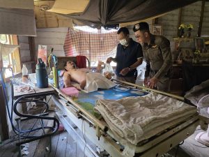 ได้เยี่ยมเยียนให้กำลังใจ นายวุฒิพงศ์ โกศล ผู้ป่วยพิการลำตัวมีเพียงครึ่งเดียว เนื่องจากประสบอุบัติเหตุ อายุ 51 ปี บ้านสะพานหิน ม.5 ต.แหลมกลัด อ.เมือง จ.ตราด พร้อมได้มอบเงินช่วยเหลือและอาหาร