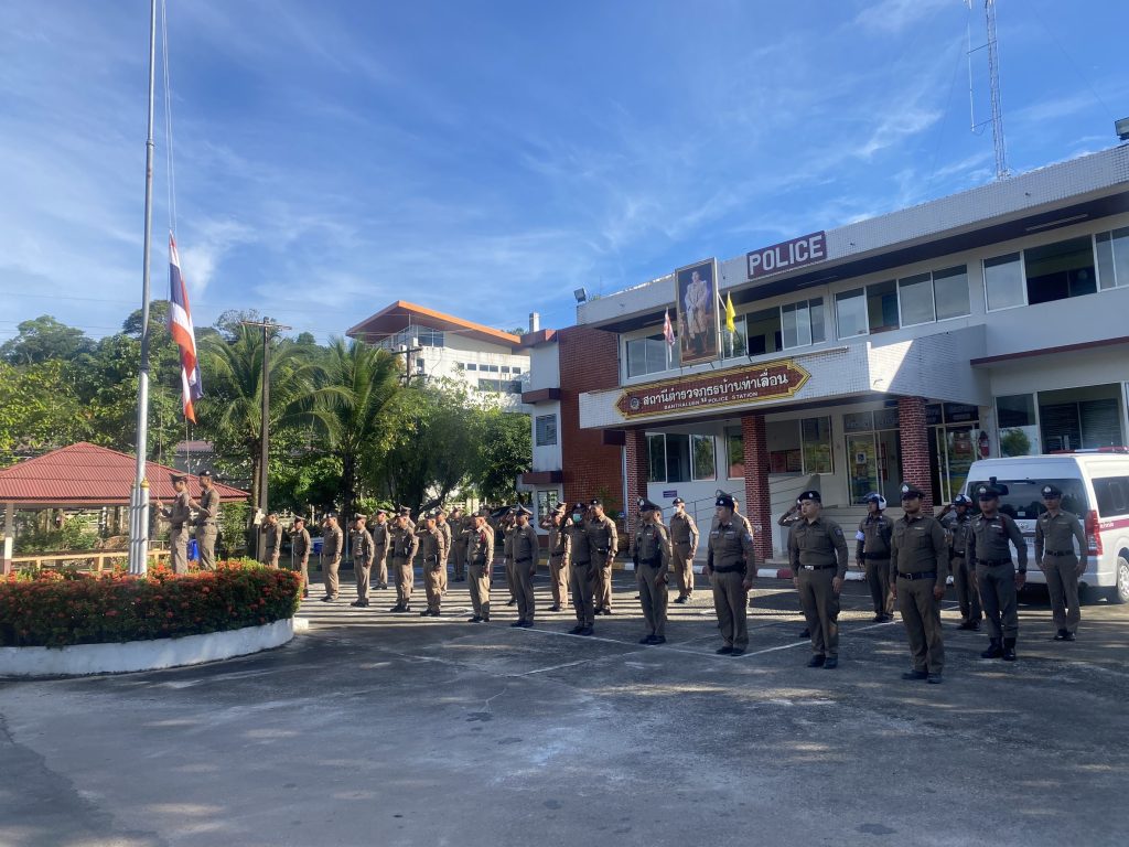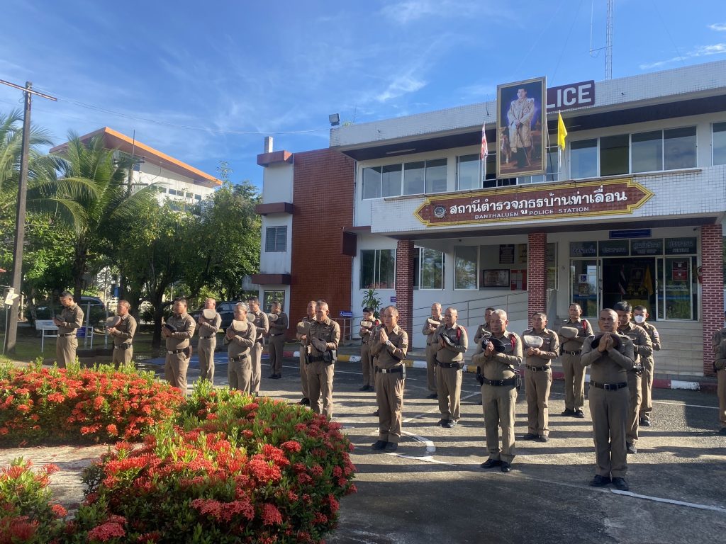 วันที่ 25 ตุลาคม 2567 พ.ต.อ.มนตรี จินะ ผกก.สภ.บ้านท่าเลื่อน เรียกข้าราชการตำรวจ สภ.บ้านท่าเลื่อน เข้าแถวเคารพธงชาติ สวดมนต์ไหว้พระ กล่าวคำปฏิญาณ อุดมคติตำรวจ ฝึกแถวประจำเดือน ประชุมประจำเดือน ประชาสัมพันธ์ การประเมิน คุณธรรมและความโปร่งใส ของสถานีตำรวจ