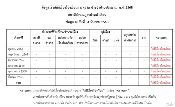 ข้อมูลสถิติเรื่องร้องเรียนการทุจริตประจำปี