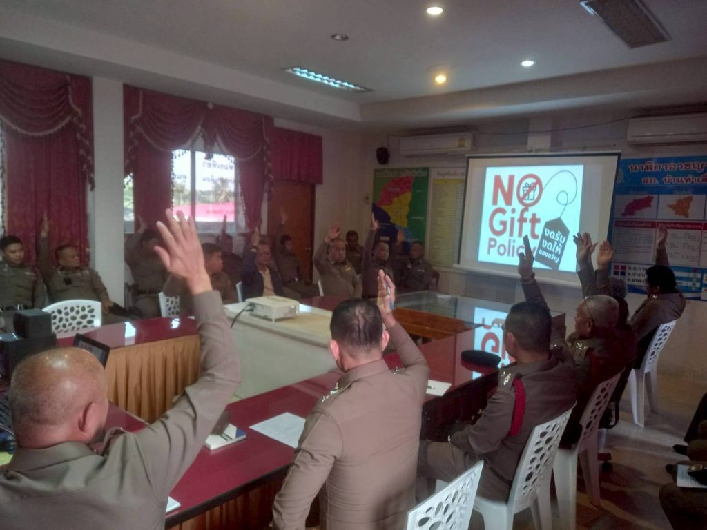 ว้นที่ 10 พฤศจิกายน 2567 พ.ต.อ.มนตรี จินะ ผกก.สภ.บ้านท่าเลื่อน ประชุมประจำเดือนข้าราชการตำรวจสภ.บ้านท่าเลื่อนเพื่อขับเคลื่อนแผนการบริหารการจัดการความเสี่ยงต่อการรับสินบนในการปฏิบัติหน้าที่ของข้าราชการตำรวจสภ.บ้านท่าเลื่อน